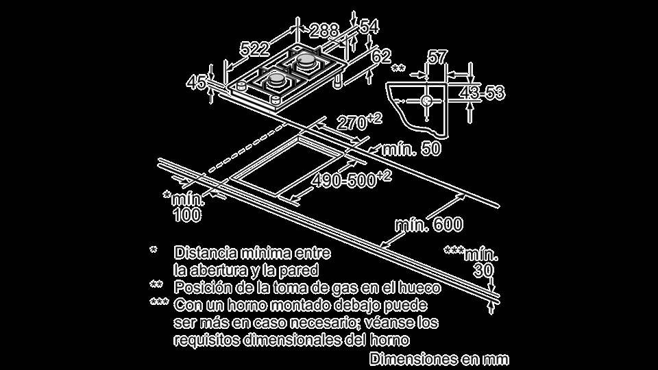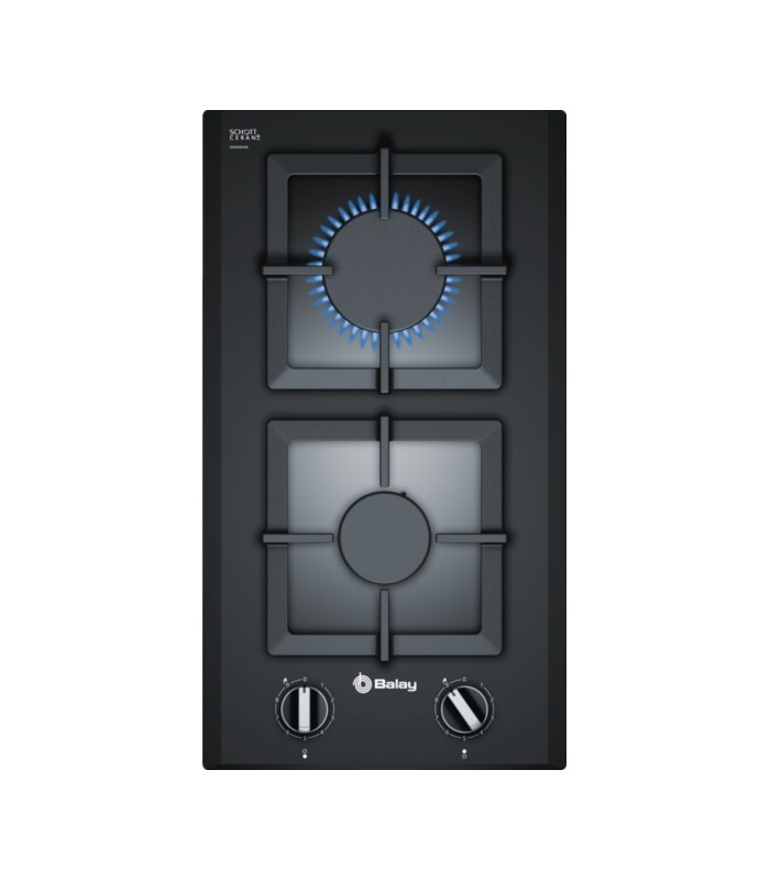 2 GAS. BUTANO. BISELADA. 30 CM. CRISTAL VITROCERAMICO. AUTOENCENDIDO. GAS STOP. CONTROL PRECISO 9 NIVELES. PARRILLAS INDIVIDUALES HIERRO FUNDIDO.