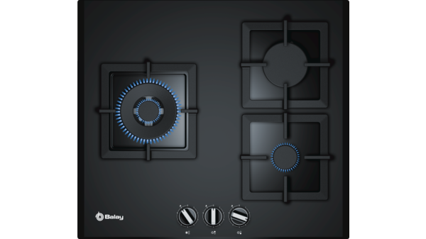 3 GAS. NAT. CRISTAL TEMPLADO NEGRO. 9 NIVELES. GAS STOP. AUTOENCENDIDO. PARRILLAS INDIVIDUALES HIERRO FUNDIDO.
