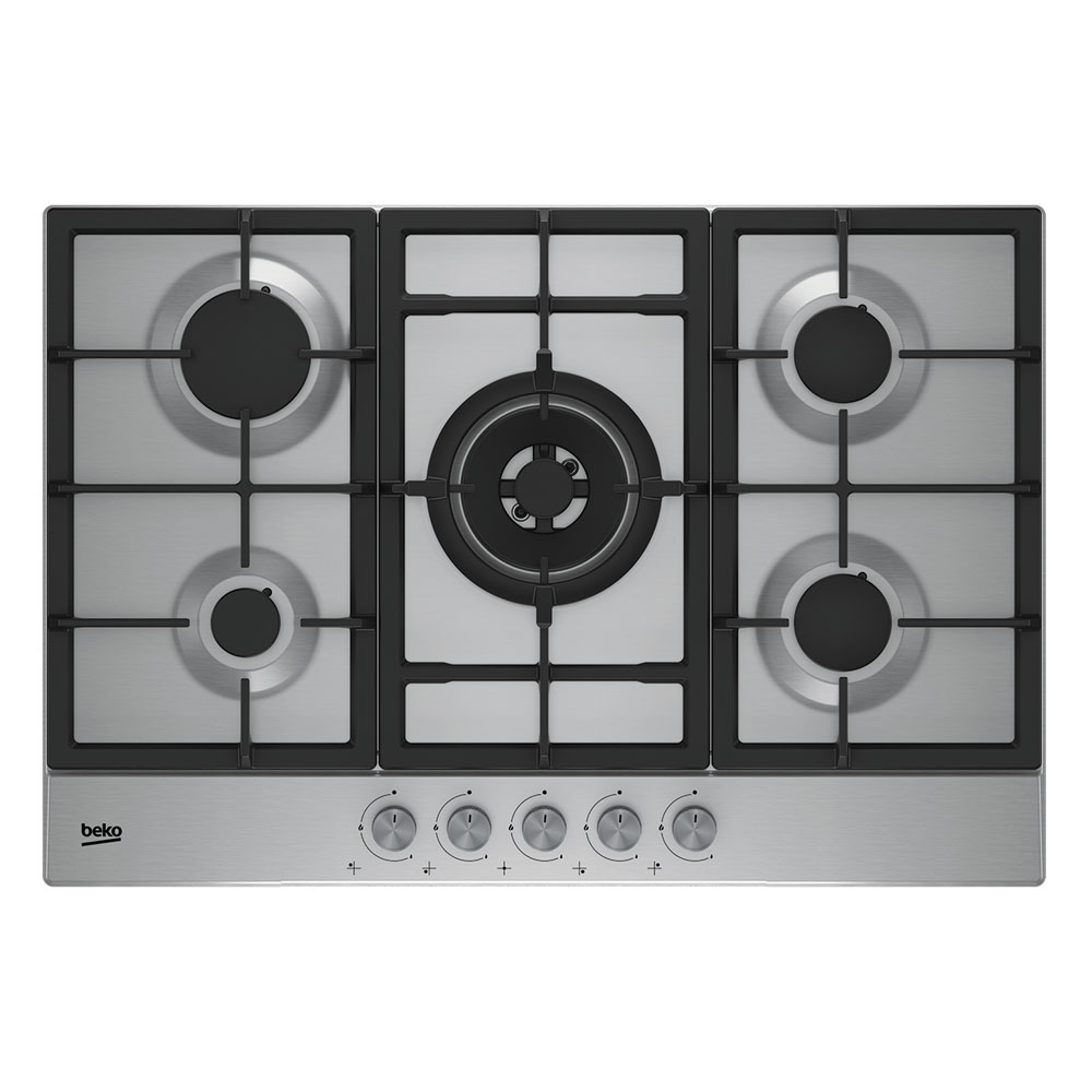 5 GAS. BUT. INOX. 75 CM. WOK CENTRAL. ENCENDIDO INTEGRADO. SOPORTES QUEMADORES DE HIERRO FORJADO. VALVULA DE SEGURIDAD EN QUEMADORES. MANDOS EN PARTE FRONTAL. INCLUYE INYECTORES GAS NATURAL.