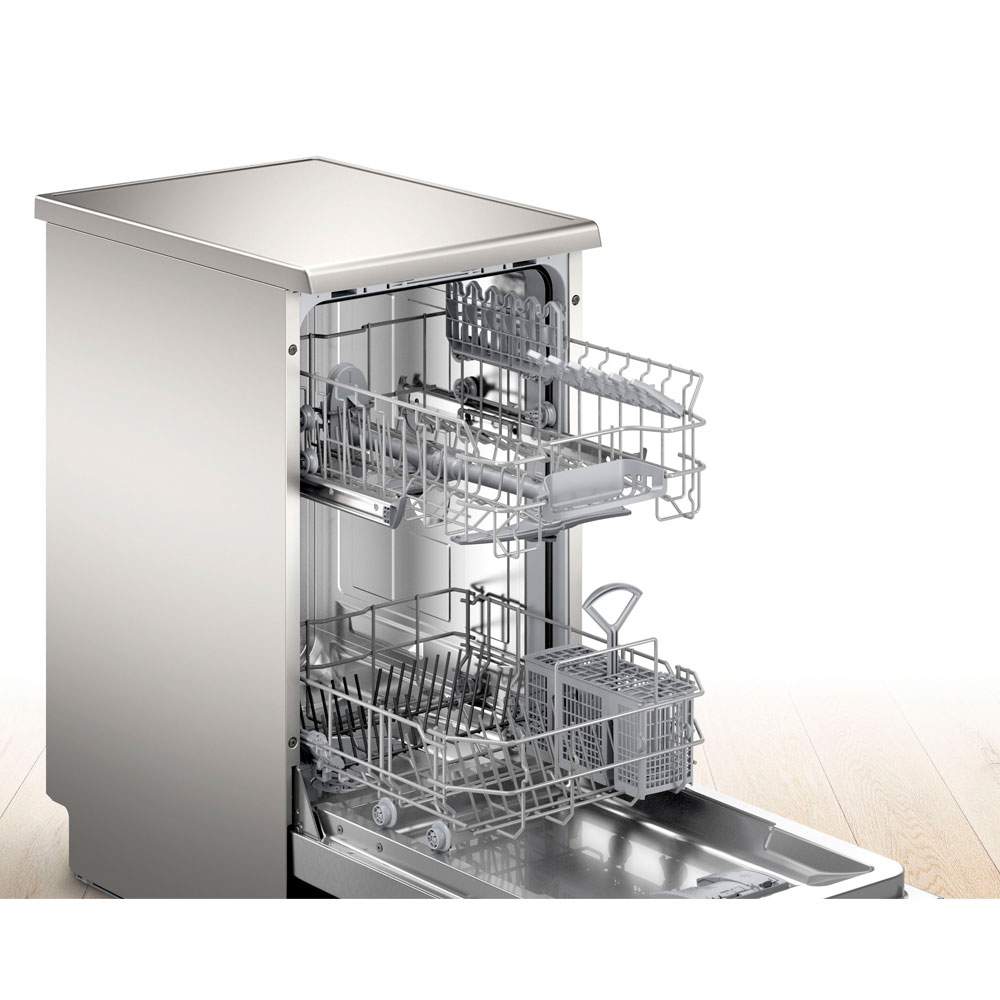 BOSCH, SPS2HKI57E, Lavavajillas, E, Libre instalación, 45 cm., 9 servicios, HC, Acero inoxidable, Nuevo diseño: display y selección directa de funciones. Progr. Auto, 1h, Favorito. Prog. esp. limpieza cuba2.0. 2 f: Extra seco VSPlus. 8,5 litros,48 db