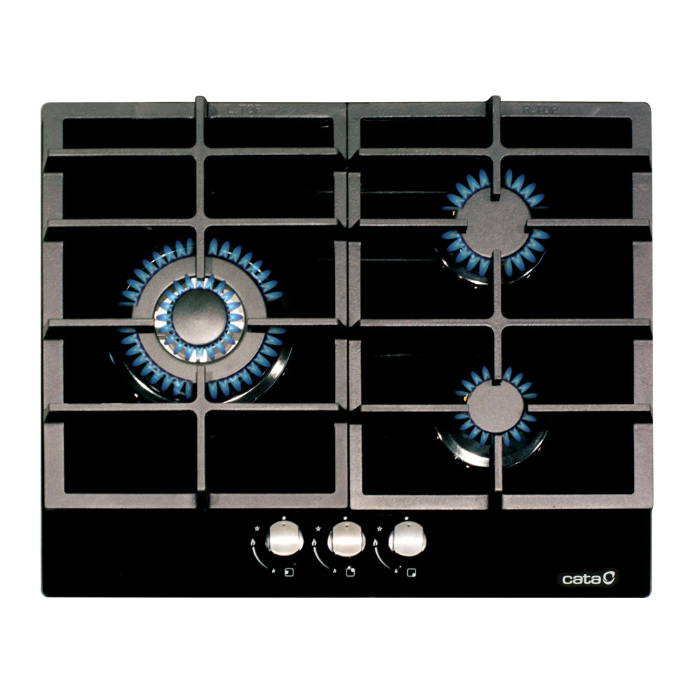 3 GAS (1 QUEMADOR TRIPLE CORONA). USO EXCLUSIVO BUTANO. CRISTALGAS. PARRILLAS DE HIERRO FUNDIDO. ENCENDIDO ELECTRONICO INTEGRADO EN EL MANDO. VALVULAS DE SEGURIDAD.