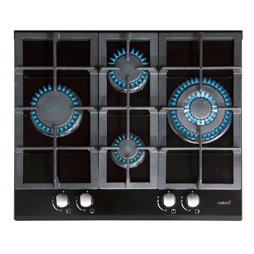 4 GAS (1 QUEMADOR TRIPLE CORONA). NATURAL. CRISTAL GAS. 64 CM. ENCENDIDO ELECTRONICO INTEGRADO EN MANDO. PARRILLAS/QUEMADORES DE HIERRO FUNDIDO. VALVULAS DE SEGURIDAD. ENTRADA GAS POR PARTE TRASERA IZQUIERDA.