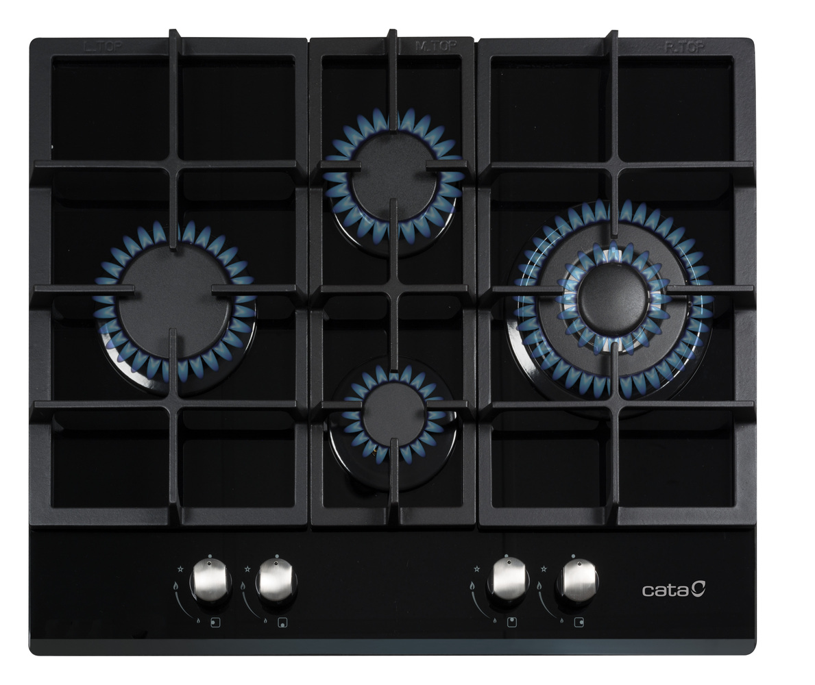 4 GAS (1 QUEMADOR TRIPLE CORONA). NATURAL. CRISTAL GAS BLANCA. 64 CM. ENCENDIDO ELECTRONICO INTEGRADO EN MANDO. PARRILLAS/QUEMADORES DE HIERRO FUNDIDO. VALVULAS DE SEGURIDAD. ENTRADA GAS POR PARTE TRASERA IZQUIERDA.