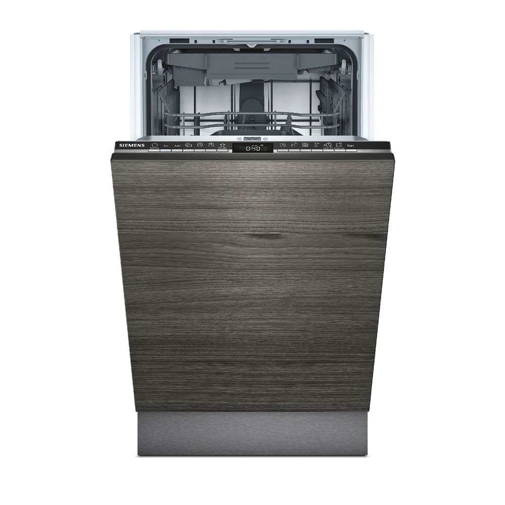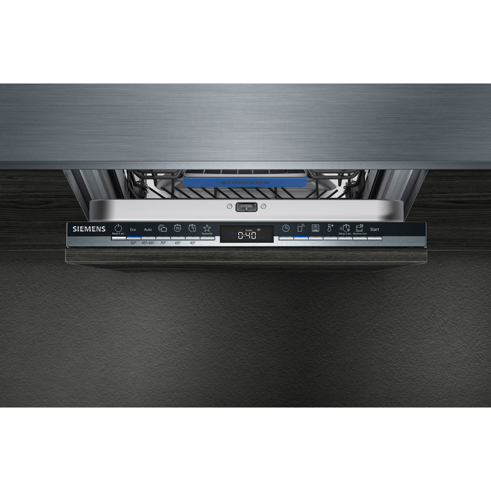 SIEMENS, SR93EX28ME, Lavavajillas, A++, Totalmente integrable, 45 cm., 10 servicios, HC, Puerta deslizante. Zócalo 5cm., Negro y acero, infoLight. nuevo diseño: display. 3ª bandeja. Progr. Auto, 1 hora. Favorito. VarioSpeed Plus. Prog. esp. limpieza cuba 2.0. Apertura automática autoOpen Dry. 9,5 l.