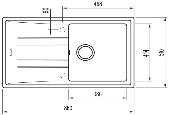 1 CUBETA + 1 ESCURRE. TEGRANITE. STONE GREY. MUEBLE 50 CM. ACABADO NO POROSO. DESAGUE AUTOMATICO CON VALVULA CANASTA 3 1/2" Y SIFON. PROFUNDIDAD DE LAS CUBETAS 200 MM.