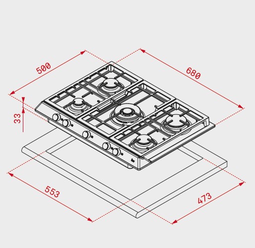 5 GAS. INOX. NATURAL. 70 CM. AUTOENCENDIDO. TERMOPAR. MANDOS FRONTALES METALIZADOS. PARRILLAS DE FUNDICION. SUSTITUYE A EX/70 5G AI AL TR CI NAT E1