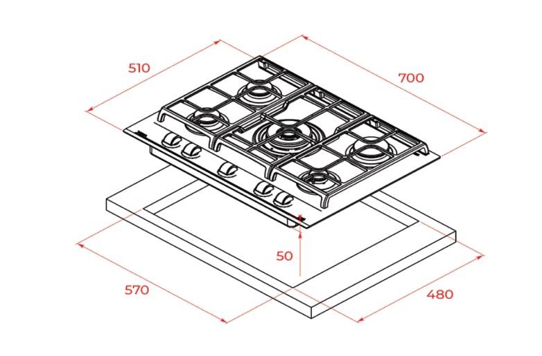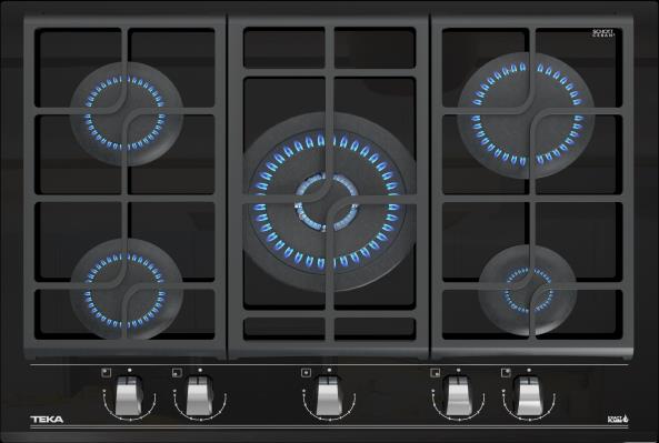 5 GAS. GAS NATURAL. CRISTAL CON BISEL FRONTAL. EXACT FLAME. SUPERFICIE DE VIDRIO CERAMICO. MANDOS FRONTALES. 9 NIVELES DE POTENCIA CON CONTROL EXACTO DE LA LLAMA. QUEMADORES DE ALTA EFICIENCIA. SEGURIDAD POR TERMOPAR INTEGRADO EN QUEMADOR INDIVIDUAL. AUTOENCENDIDO INTEGRADO EN QUEMADOR Y ACCIONADO POR CADA MANDO. PARRILLAS DE FUNDICION DE AMPLIA SUPERFICIE. SISTEMA DE FACIL INSTALACION FAST-CLICK.