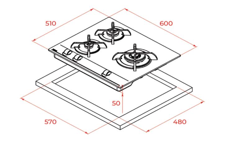 3 GAS. NATURAL. CRISTAL GAS. CRISTAL REDONDEADO. SUPERFICIE DE VIDRIO TEMPLADO. MANDOS FRONTALES. SEGURIDAD POR TERMOPAR INTEGRADO EN QUEMADOR INDIVIDUAL. AUTOENCENDIDO INTEGRADO EN QUEMADOR Y ACCIONADO POR EL MANDO. PARRILLAS DE FUNDICION INDIVIDUALES. SISTEMA DE FACIL INSTALACION FAST-CLICK.