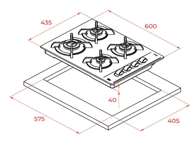 4 GAS. NATURAL. CRISTALGAS. CRISTAL REDONDEADO. SUPERFICIE DE VIDRIO TEMPLADO. MANDOS LATERALES. SEGURIDAD POR TERMOPAR INTEGRADO EN QUEMADOR INDIVIDUAL. AUTOENCENDIDO INTEGRADO EN QUEMADOR. PARRILLAS DE FUNDICION INDIVIDUALES. SISTEMA DE FACIL INSTALACION FAST CLICK.